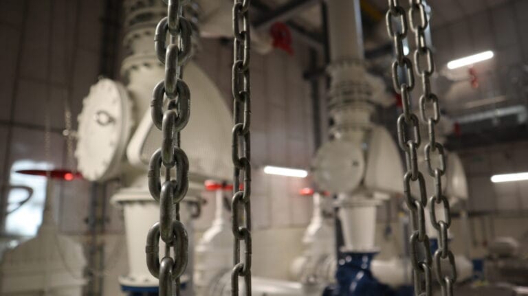 Je vliegt over de bouwplaats heen, langs imposante constructies en details die direct linken aan het verhaal. Twee scènes worden bijvoorbeeld met elkaar verbonden door buizen, een knipoog naar de kilometers leidingwerk die onder de grond verdween.